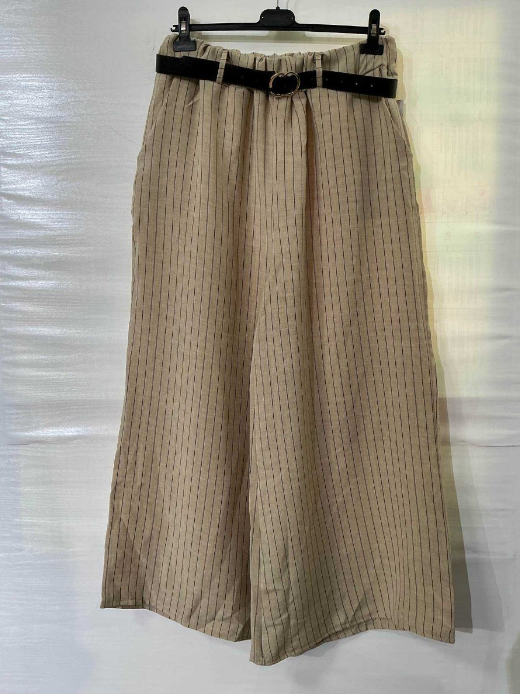 Pantalon largo con goma en la cintura y rayas.