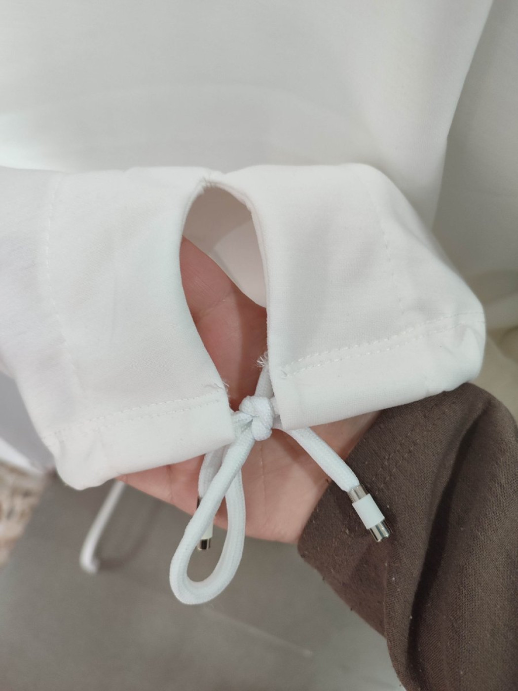 Sudadera larguita por al parte trasera con posibilidad de anudarla.